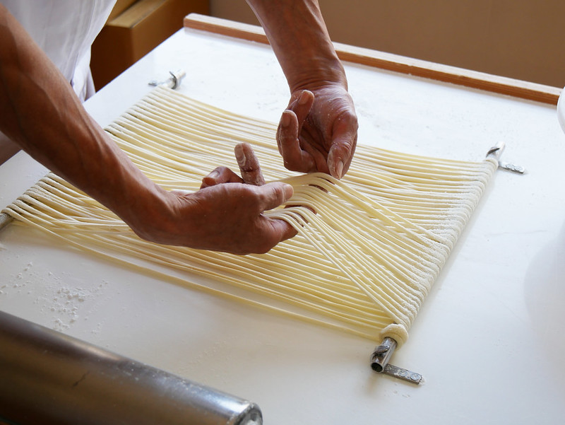 Another story tells us that during the Nara period, a Japanese envoy was introduced to 14 different kinds of confections while he was in China. One of them was called sakube, also known as muginawa according to the ancient dictionary, the Shinsen Jikyō. Muginawa is the origin of many Japanese noodles. But the muginawa mentioned in the Shinsen Jikyō was made with both wheat and rice flour.